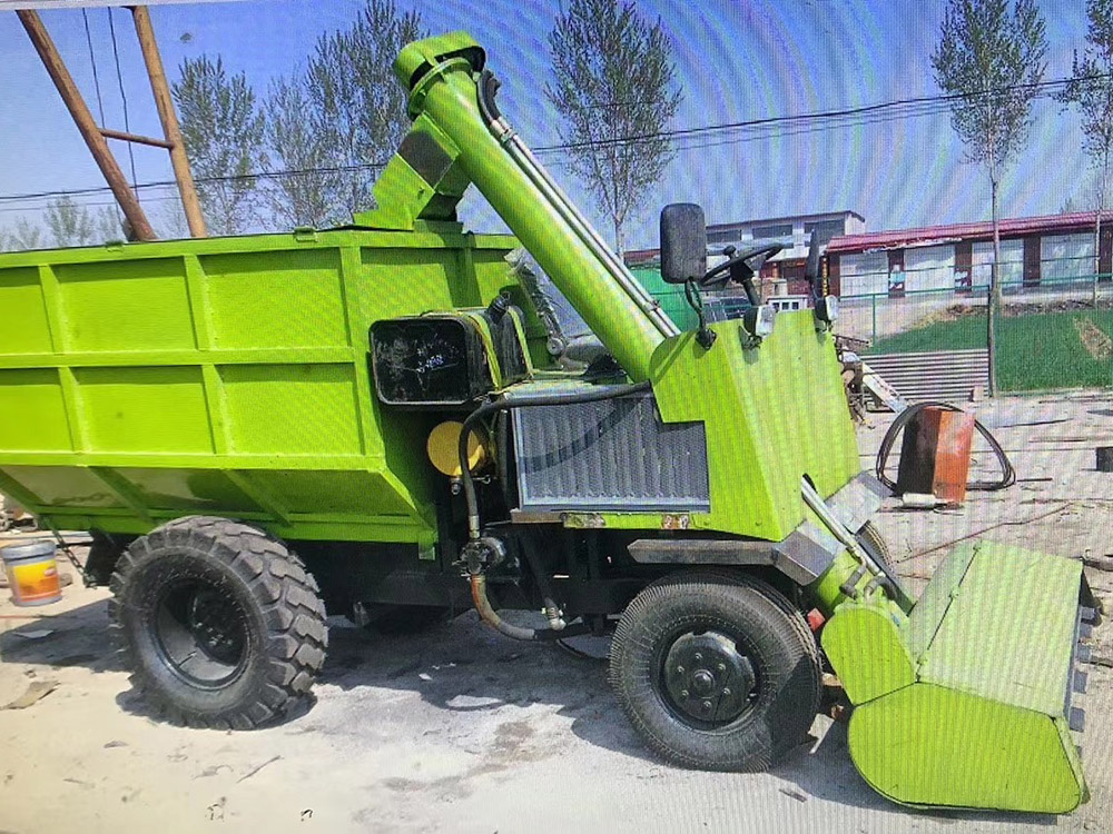 牧場自走式清糞車,490馬力柴油發動機,鏟車無級變速箱。鏟車行走橋,全液壓控制,重型鏈條刮板上料,糞干,糞稀都不怕,3立方料箱,清糞、運輸一機完成。專為養殖牛場設計,方便快捷,節省人工,節省時間。 新型牧場自走式清糞車,屬于畜牧機械領域,規;膛銮寮S車中,車斗為上寬下窄的倒梯形